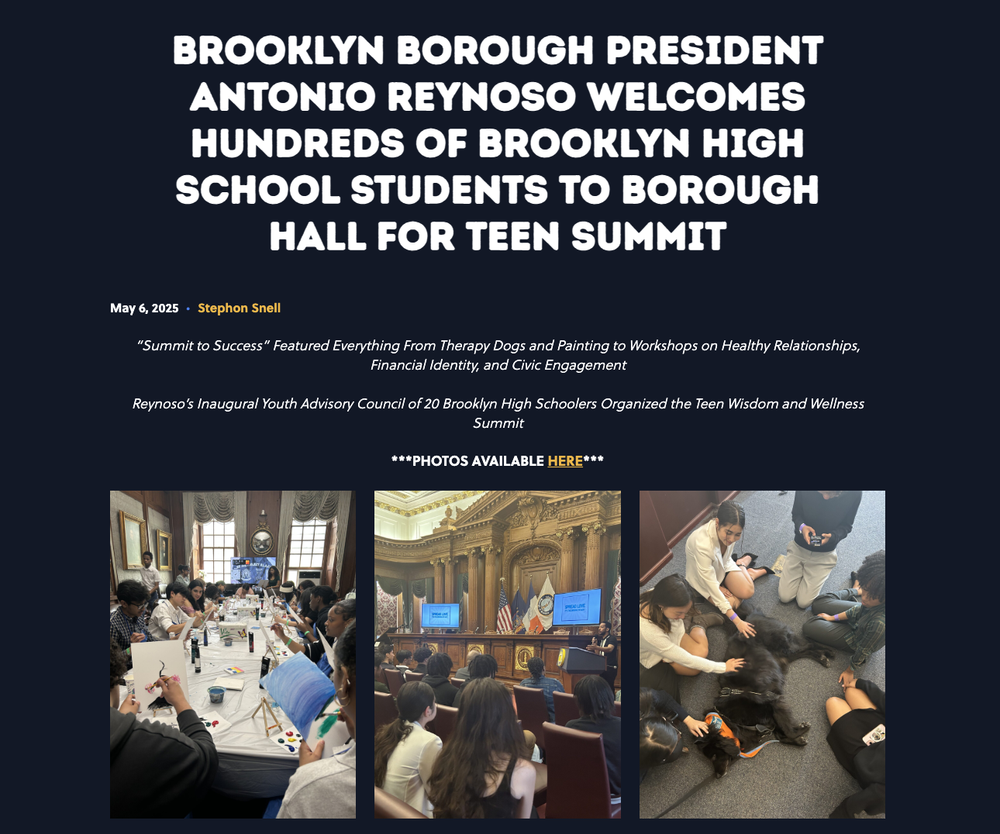 Sadie Nash Leadership Project 5/6/25 Sadie Nash Leadership Project 5/6/25 SNLP IN THE NEWS: Brooklyn Borough President Antonio Reynoso Welcomes Hundreds of Brooklyn High School Students to Borough Hall for Teen Summit Read More