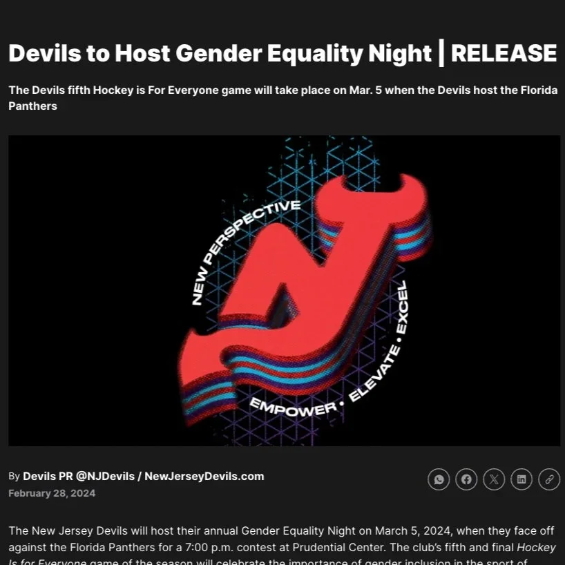 Sadie Nash Leadership Project 2/28/24 Sadie Nash Leadership Project 2/28/24 SNLP IN THE NEWS: Devils to Host Gender Equality Night | RELEASE Read More